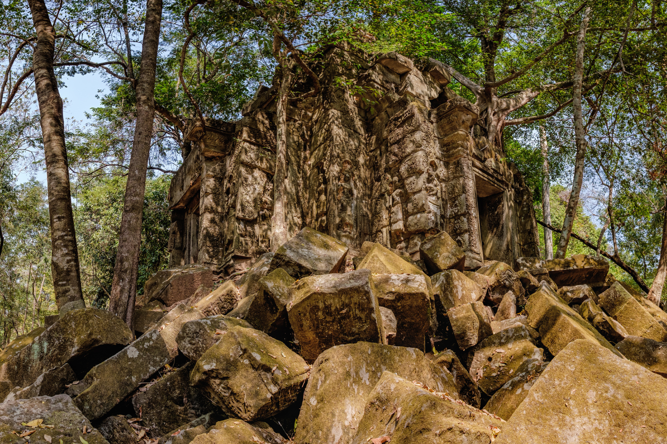 Vous prendrez la route pour rejoindre les falaises karstiques de Kbal Spean, formant une barrière infranchissable de plus 50km. Vous gravirez la montagne par un sentier oublié à travers la jungle. Une fois au sommet vous bénéficierez d’une vue imprenable sur la campagne environnante avant de vous enfoncer dans des failles pour une aventure souterraine surprenante. Vous continuerez à pied sur un sentier forestier pour atteindre la rivière sculptée par les ermites, aux mille lingas. Vous retrouverez ensuite votre chauffeur pour rejoindre Beng Mealea, temple rendu célèbre par le film de Jean Jacques Annaud « deux frères ». Un chaos de bloc de grès gisant à terre, la jungle y reprend peu à peu ses droits, le temple d’Indiana Jones pas excellence.