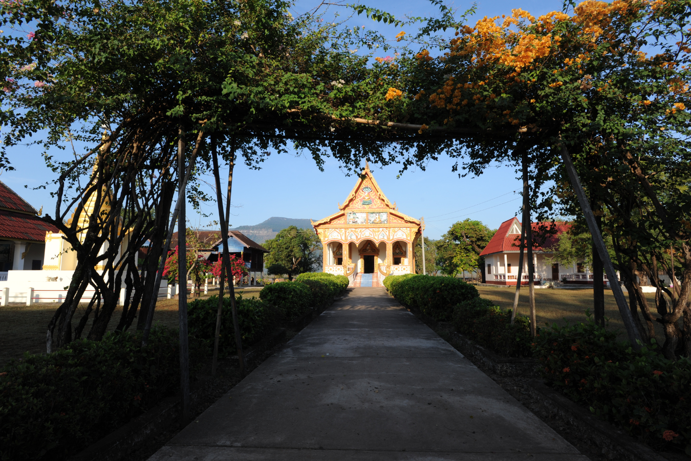 Pour cette journée, vous rejoindrez la belle Champassak pour la visite du Vat Phu, temple-montagne contemporain d’Angkor, lui aussi classé au Patrimoine mondial de l’UNESCO. Perché en haut d’une montagne, il offre une superbe vue panoramique.